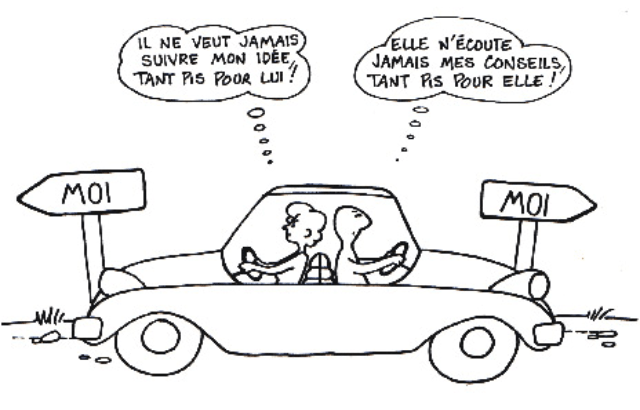 Le meilleur exercice que j’ai imaginé, pour montrer l’exemple à un couple en crise qui ne partagerait plus rien, l’un des deux prenez toutes les décisions seul ne laissant à l’autre que la possibilité de le suivre. Ils n’avaient plus du tout confiance en l’autre. L’autre était perdu et n’avait plus de pouvoir de décision, peu à peu son estime de soi était diminué jusqu’à ne plus oser dire ou faire.